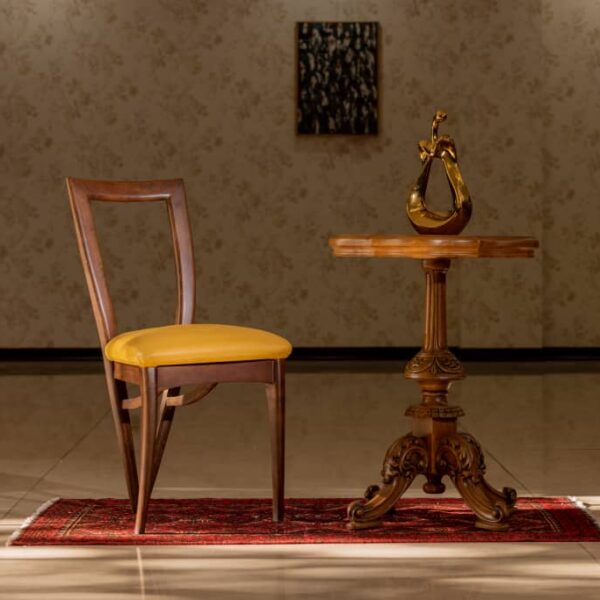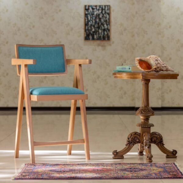 این مجموعه شامل صندلی، میز و تخته نرد است که صفحه میز آن قابلیت چرخش و برگرداندن دارد و بهراحتی از صفحه تخته نرد به صفحه شطرنج تبدیل میشود. این طراحی هوشمندانه بازی دو نفره را در فضای شما ممکن میسازد و از چوب راش با روکش گردو و معرقهای ظریف بهره میبرد.